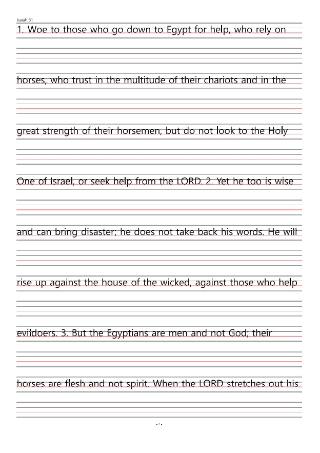 | Isaiah 30 Handwrite the Bible 이사야30장 영어성경필사 PDF (0) | 2024.08.24 |