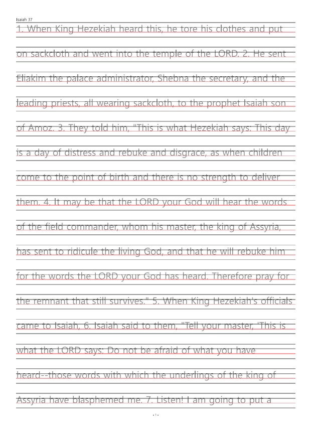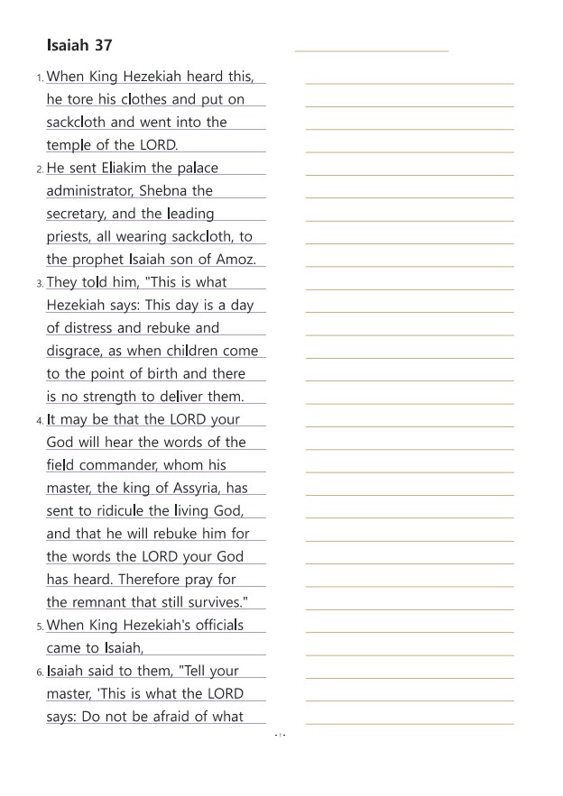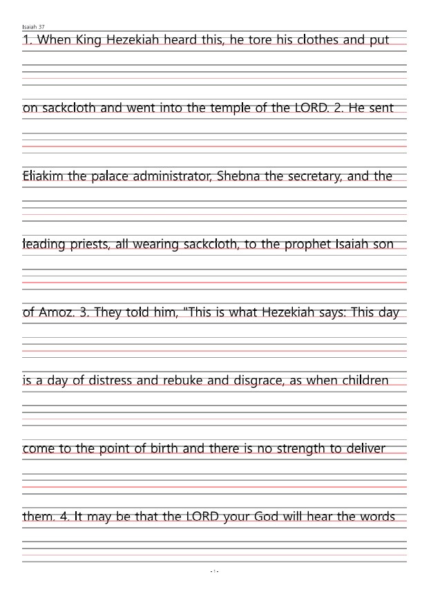 | Isaiah 36 Handwrite the Bible 이사야36장 영어성경필사 PDF (0) | 2024.08.24 |