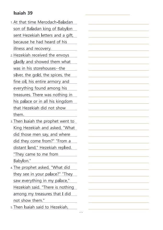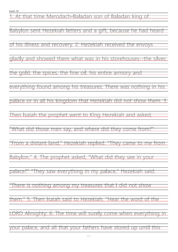 | Isaiah 38 Handwrite the Bible 이사야38장 영어성경필사 PDF (0) | 2024.08.24 |