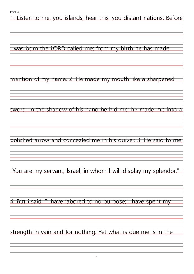 | Isaiah 48 Handwrite the Bible 이사야48장 영어성경필사 PDF (0) | 2024.08.25 |