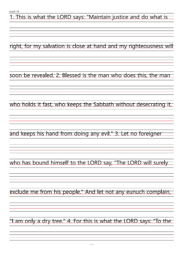 | Isaiah 58 Handwrite the Bible 이사야58장 영어성경필사 PDF (0) | 2024.08.25 |