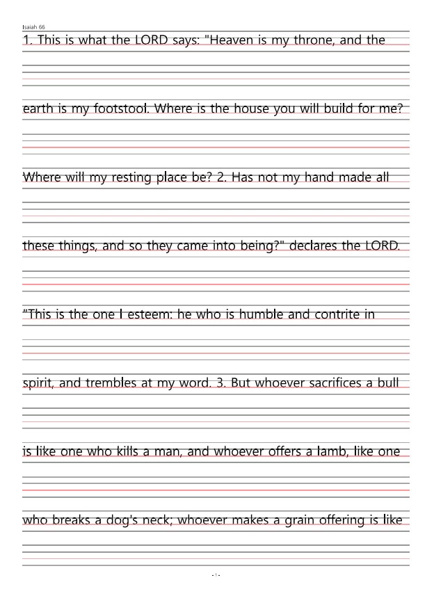 | Isaiah 65 Handwrite the Bible 이사야65장 영어성경필사 PDF (0) | 2024.08.25 |
