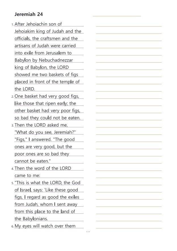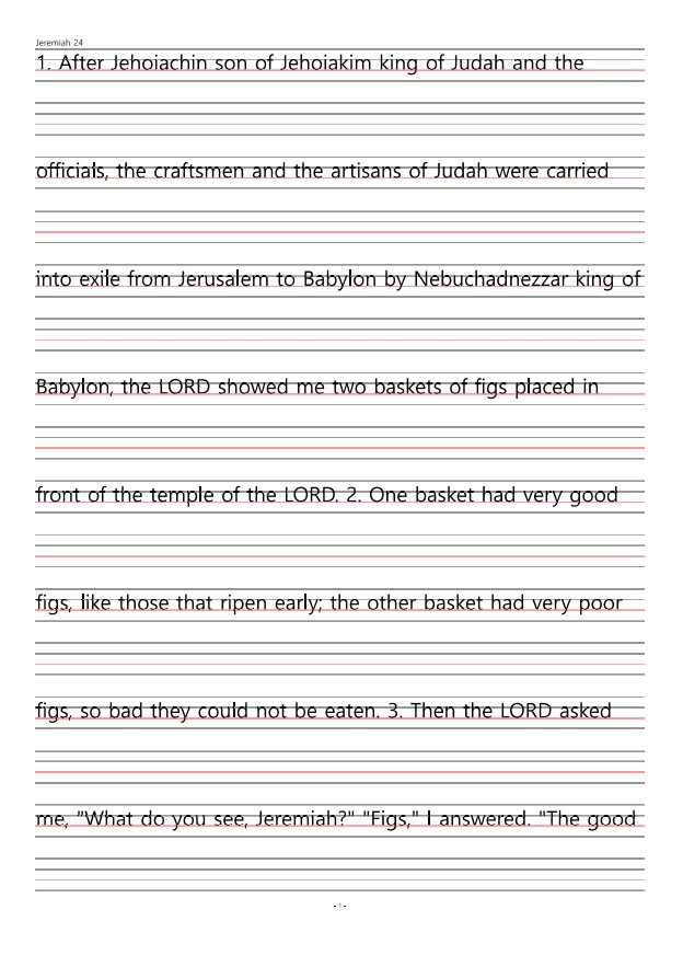 | Jeremiah 25 Handwrite the Bible 예레미야25장 영어성경필사 PDF (0) | 2024.08.27 |