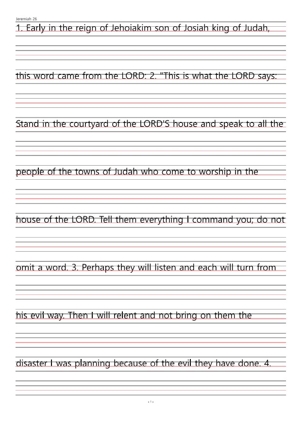 | Jeremiah 25 Handwrite the Bible 예레미야25장 영어성경필사 PDF (0) | 2024.08.27 |