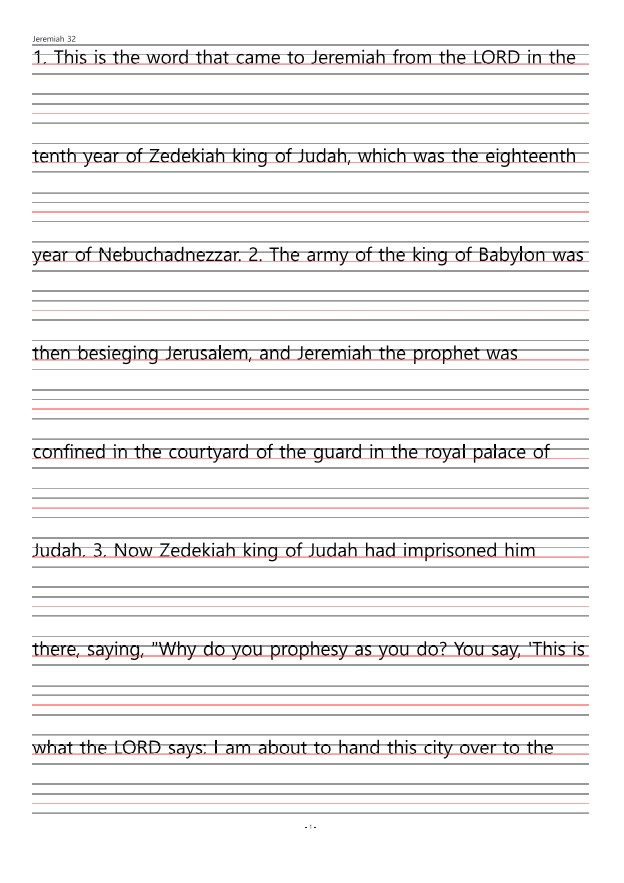 | Jeremiah 33 Handwrite the Bible 예레미야33장 영어성경필사 PDF (0) | 2024.08.27 |