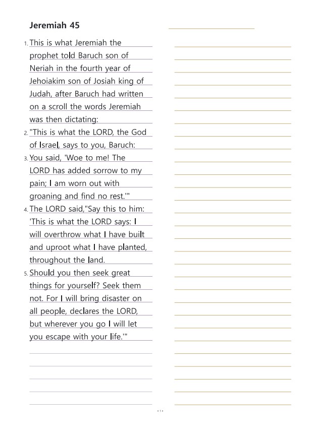 예레미야45장 영어성경따라쓰기