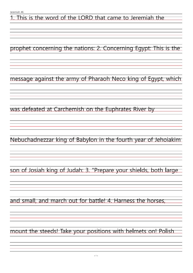 | Jeremiah 47 Handwrite the Bible 예레미야47장 영어성경필사 PDF (0) | 2024.08.27 |