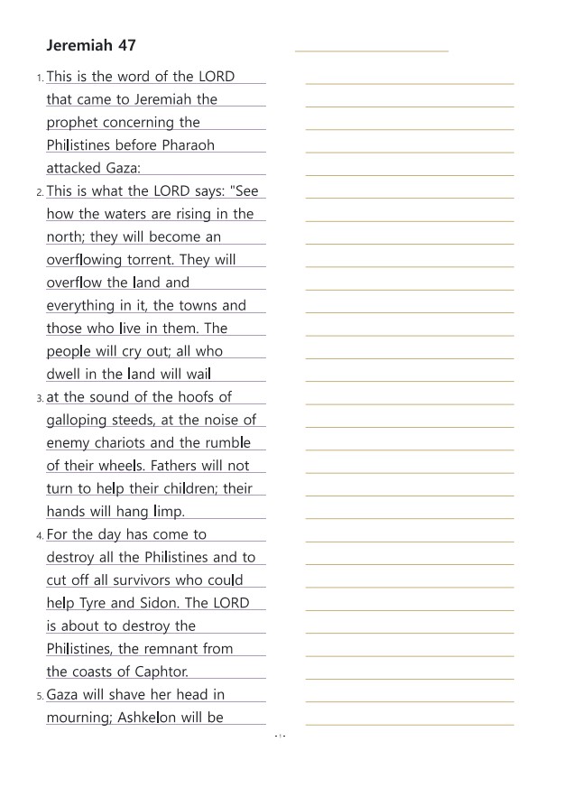 예레미야47장 영어성경따라쓰기