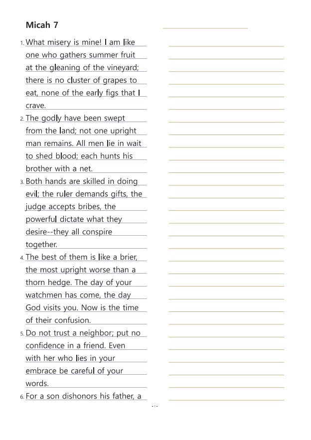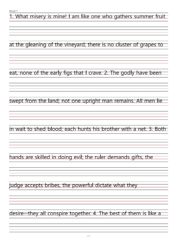 | Micah 6 Handwrite the Bible 미가6장 영어성경필사 PDF (0) | 2024.09.01 |