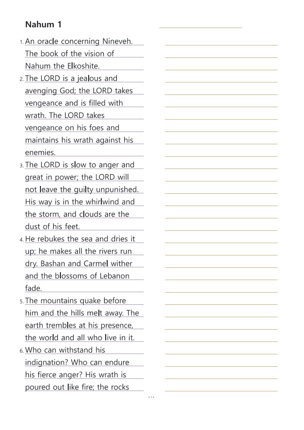 | Nahum 3 Handwrite the Bible 나훔3장 영어성경필사 PDF (0) | 2024.09.01 |