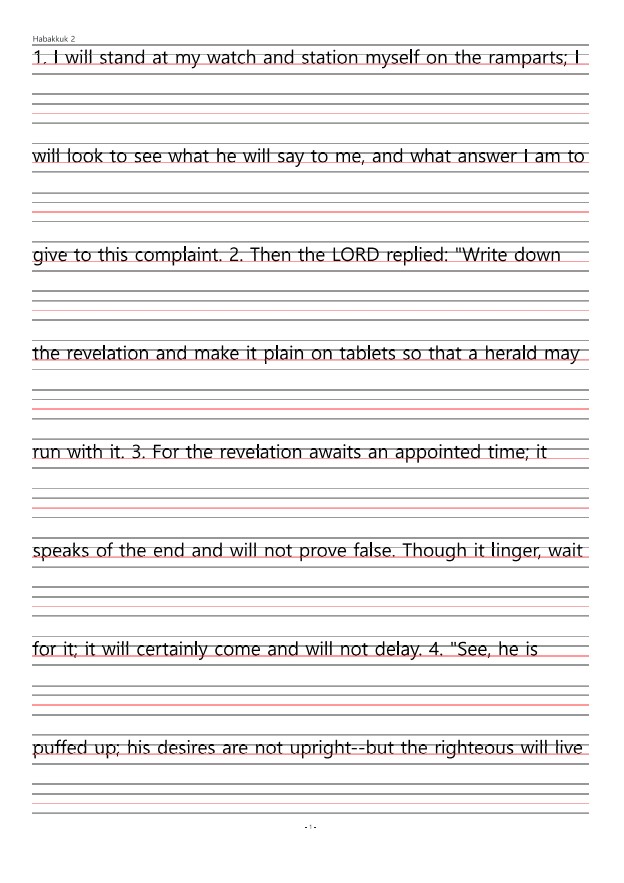 | Habakkuk 1 Handwrite the Bible 하박국1장 영어성경필사 PDF (0) | 2024.09.01 |