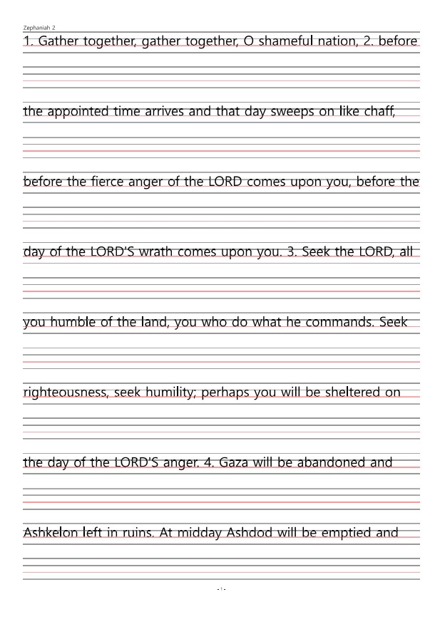 | Zephaniah 1 Handwrite the Bible 스바냐1장 영어성경필사 PDF (0) | 2024.09.01 |