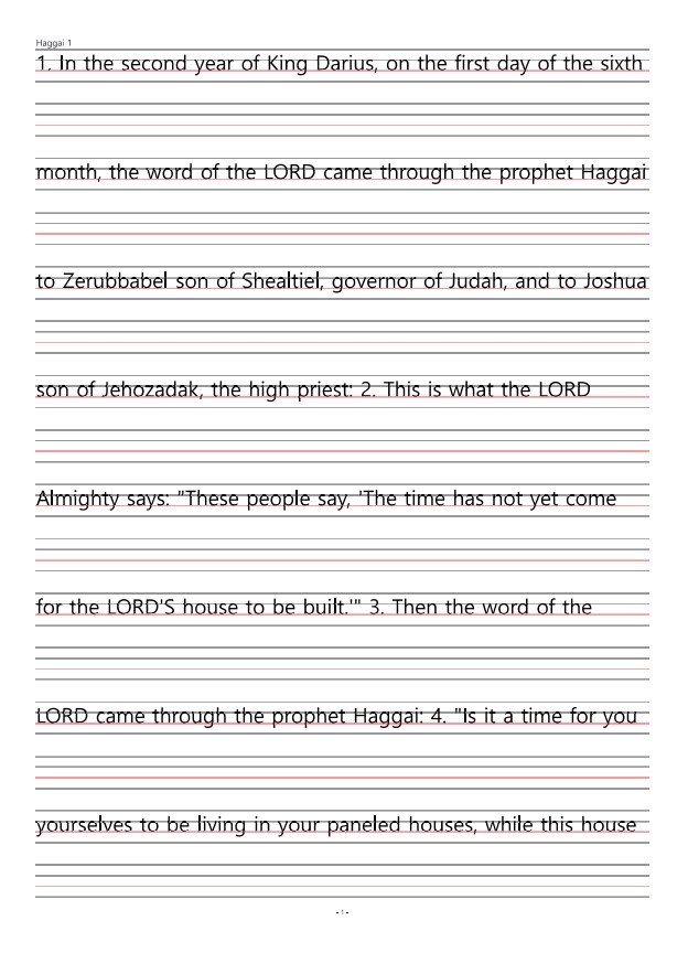 | Haggai 2 Handwrite the Bible 학개2장 영어성경필사 PDF (1) | 2024.09.02 |