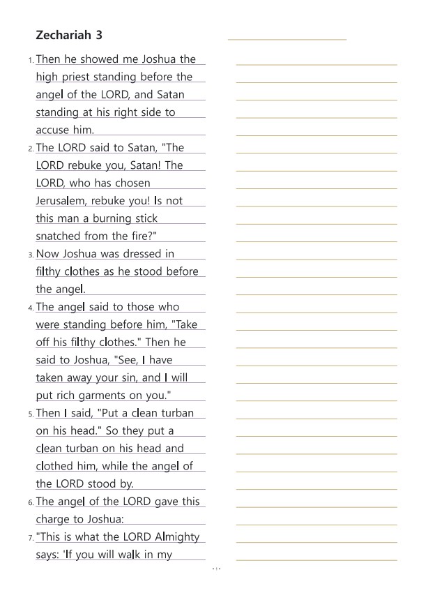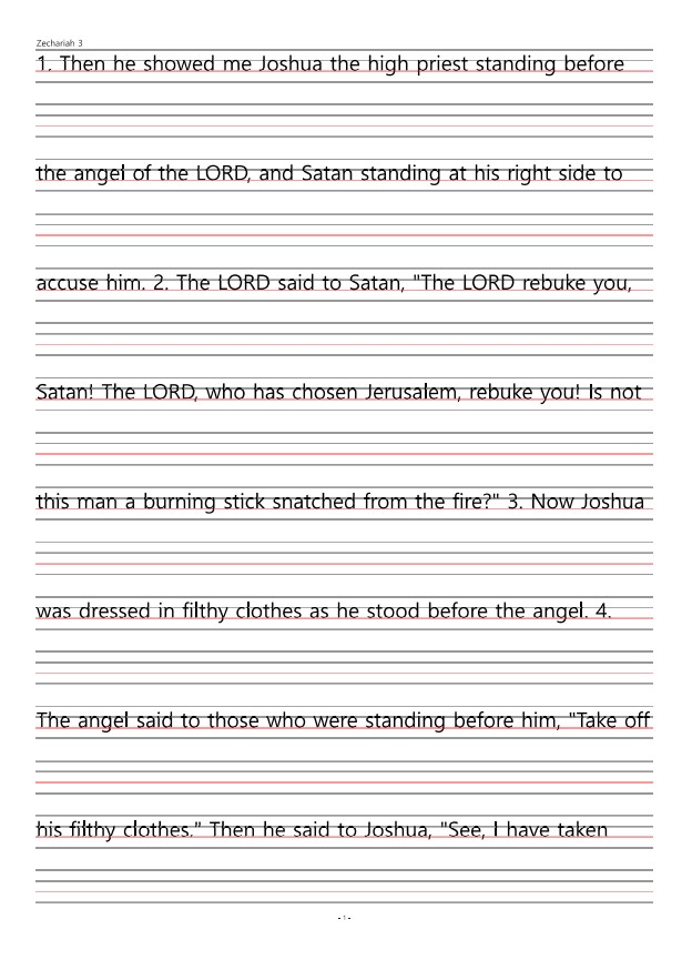 | Zechariah 1 Handwrite the Bible 스가랴1장 영어성경필사 PDF (0) | 2024.09.02 |