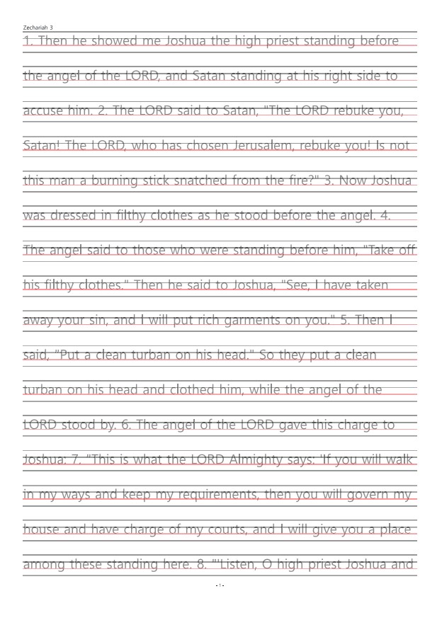 | Zechariah 4 Handwrite the Bible 스가랴4장 영어성경필사 PDF (1) | 2024.09.02 |