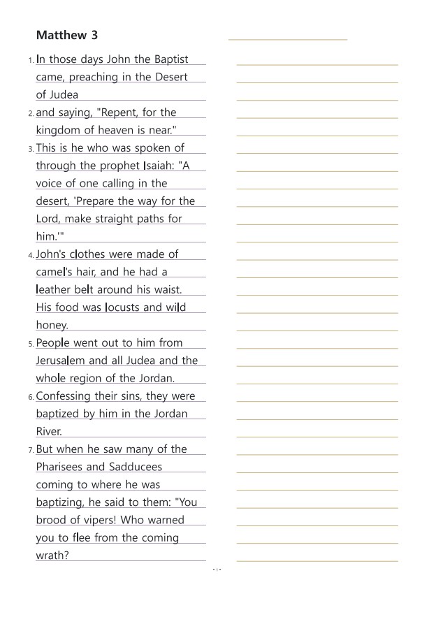 마태복음3장 영어성경따라쓰기