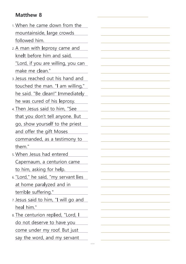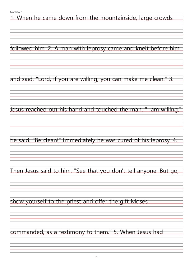| Matthew 10 Handwrite the Bible 마태복음10장 영어성경필사 PDF (0) | 2024.09.03 |