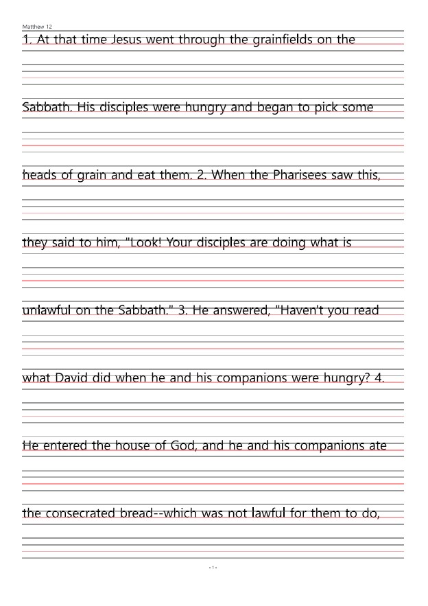 | Matthew 14 Handwrite the Bible 마태복음14장 영어성경필사 PDF (1) | 2024.09.03 |