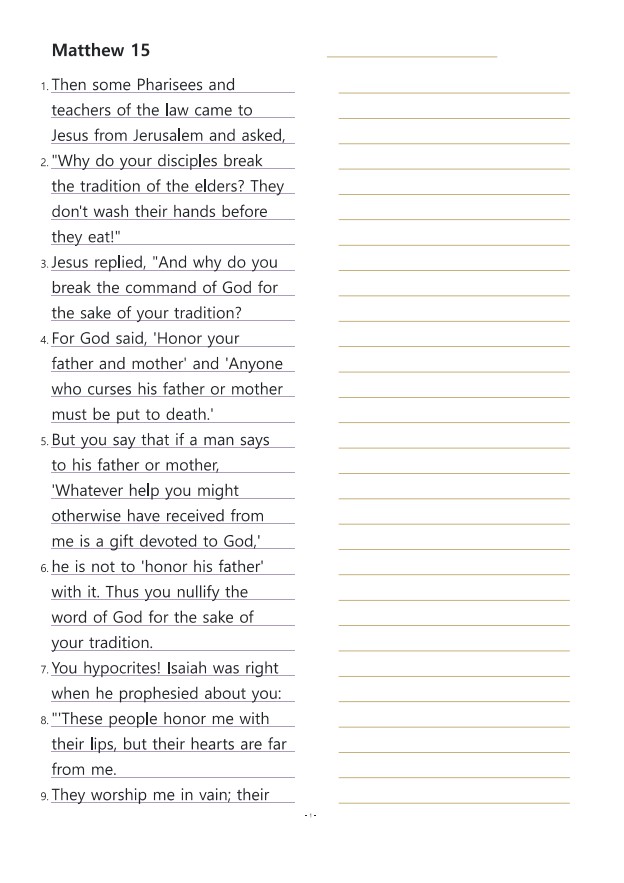 | Matthew 13 Handwrite the Bible 마태복음13장 영어성경필사 PDF (1) | 2024.09.03 |