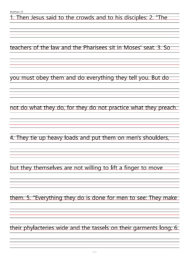 | Matthew 24 Handwrite the Bible 마태복음24장 영어성경필사 PDF (0) | 2024.09.03 |