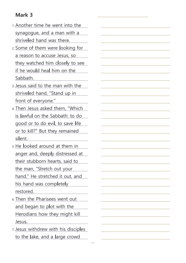 | Mark 4 Handwrite the Bible 마가복음4장 영어성경필사 PDF (1) | 2024.09.04 |
