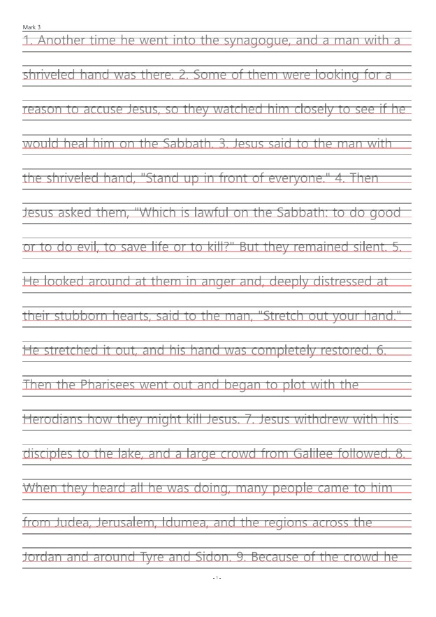 | Mark 5 Handwrite the Bible 마가복음5장 영어성경필사 PDF (1) | 2024.09.04 |