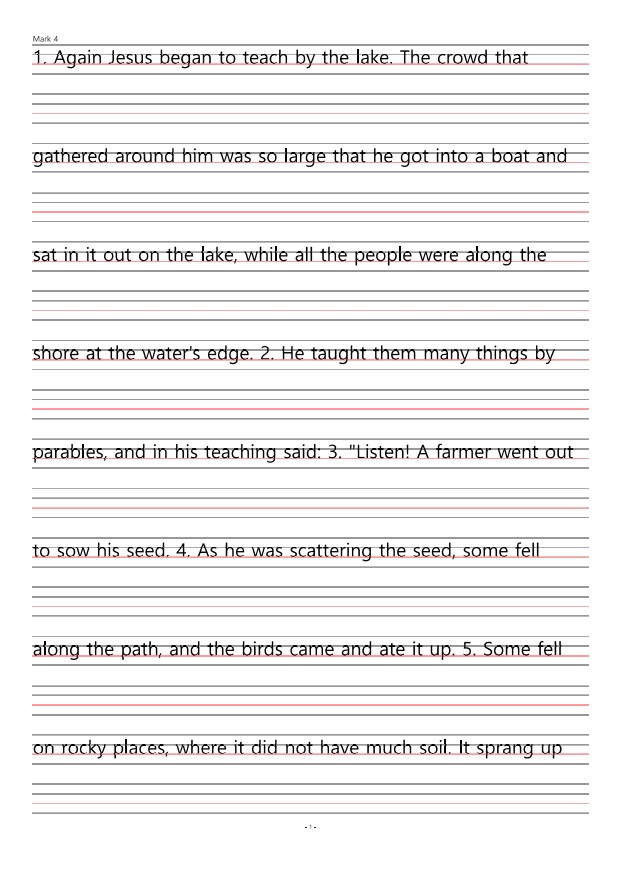 | Mark 5 Handwrite the Bible 마가복음5장 영어성경필사 PDF (1) | 2024.09.04 |