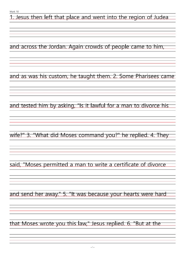 | Mark 12 Handwrite the Bible 마가복음12장 영어성경필사 PDF (2) | 2024.09.04 |
