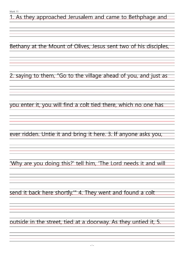 | Mark 10 Handwrite the Bible 마가복음10장 영어성경필사 PDF (1) | 2024.09.04 |