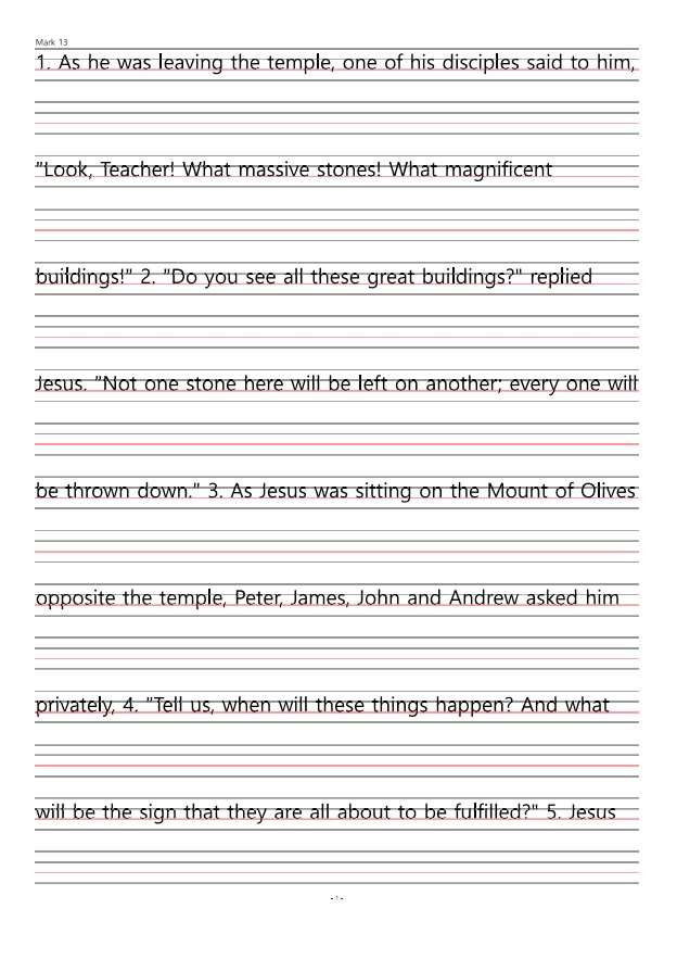 | Mark 12 Handwrite the Bible 마가복음12장 영어성경필사 PDF (2) | 2024.09.04 |