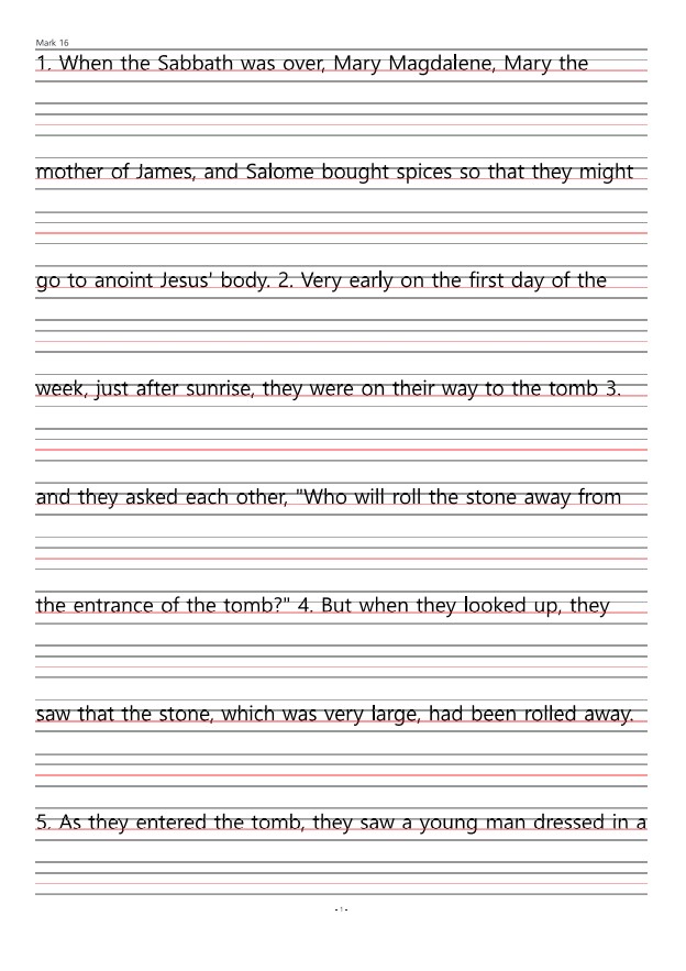 | Mark 13 Handwrite the Bible 마가복음13장 영어성경필사 PDF (0) | 2024.09.04 |