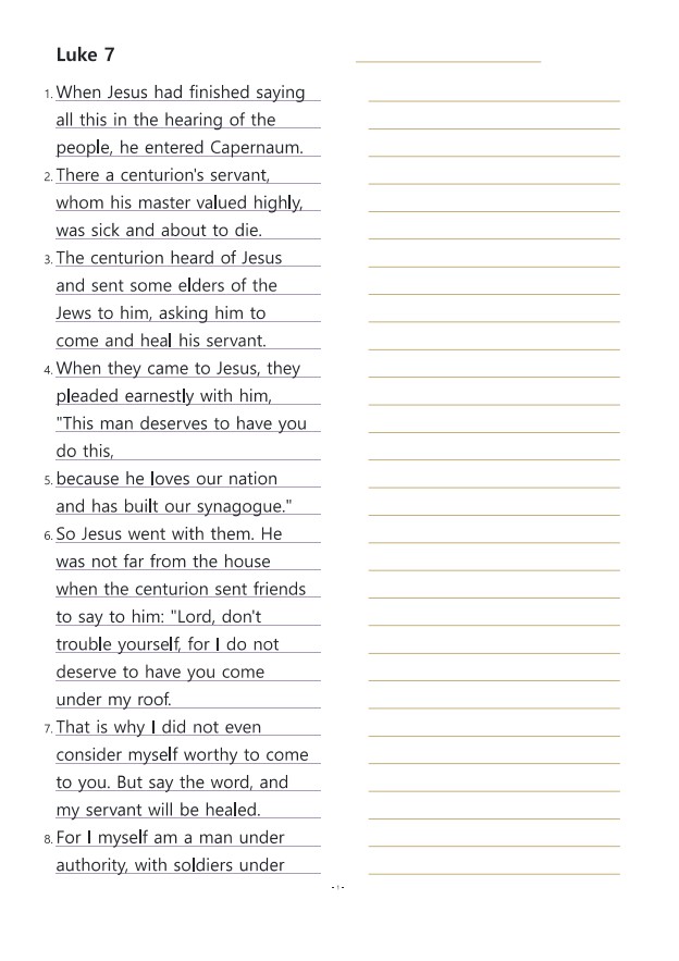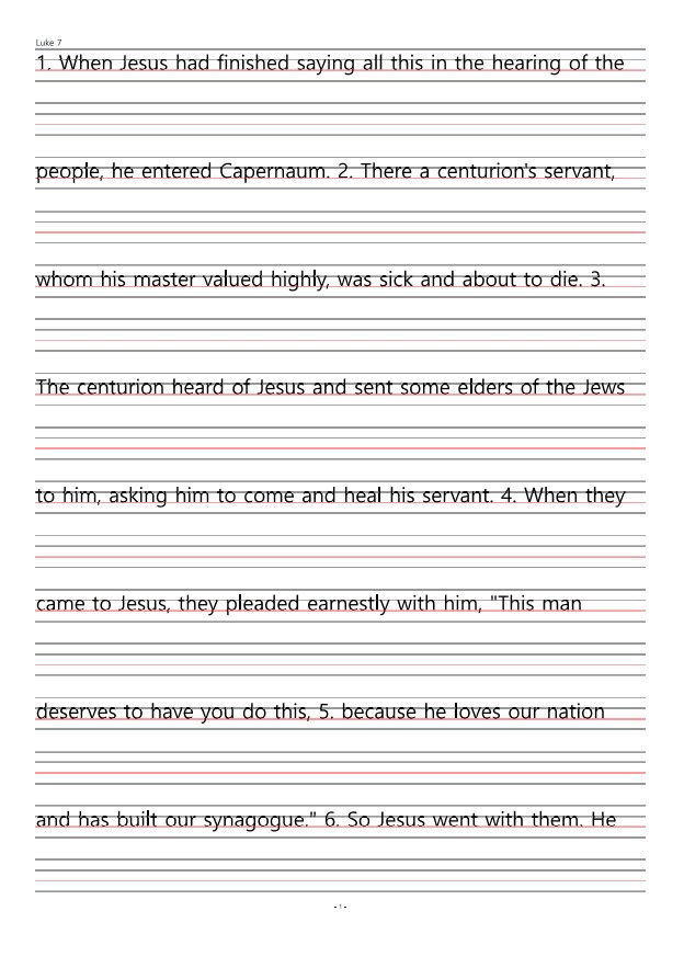 누가복음7장 영어성경따라쓰기