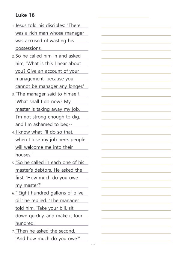 누가복음16장 영어성경따라쓰기