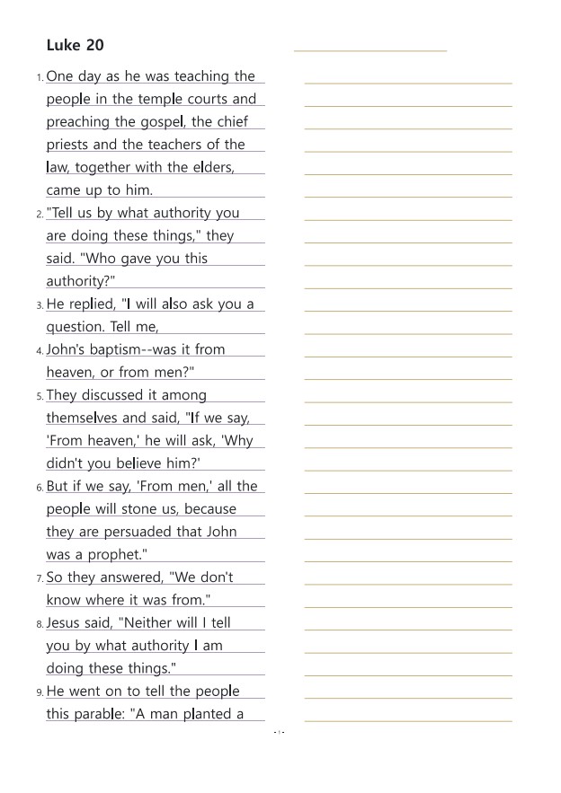 | Luke 21 Handwrite the Bible 누가복음21장 영어성경필사 PDF (0) | 2024.09.05 |