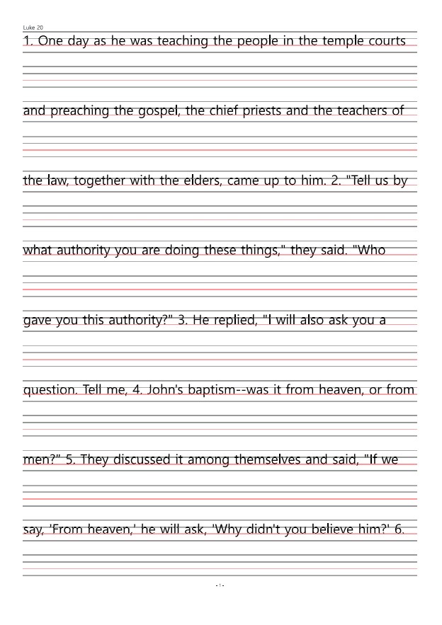 | Luke 17 Handwrite the Bible 누가복음17장 영어성경필사 PDF (1) | 2024.09.05 |