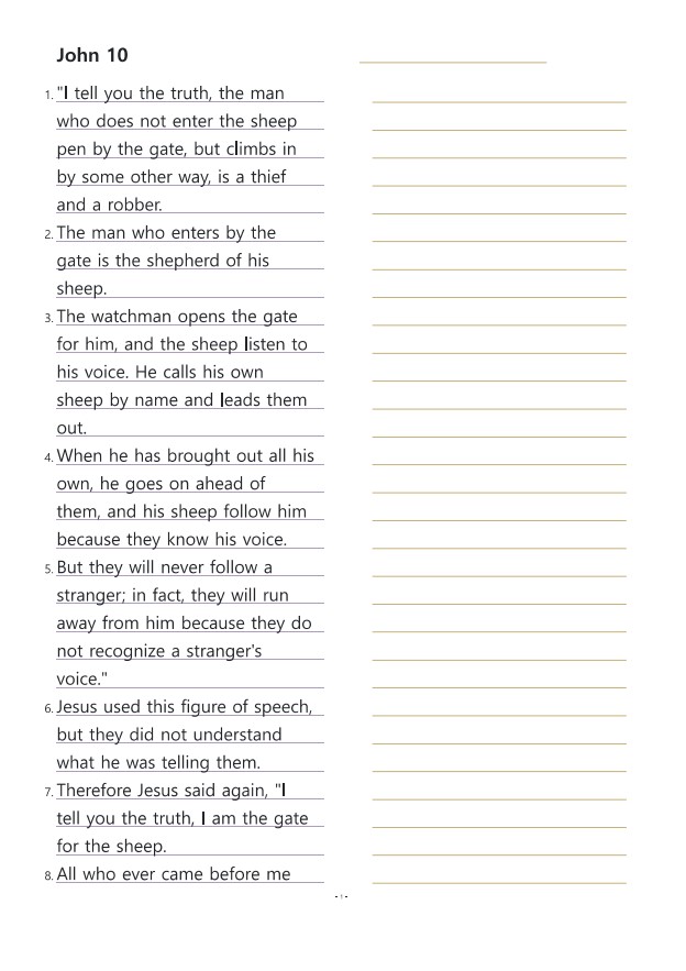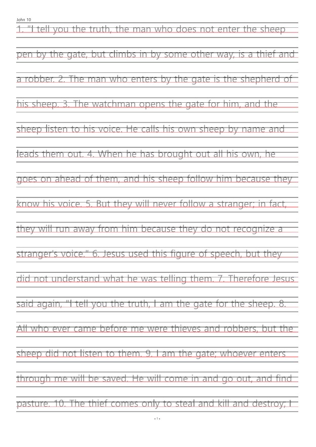 | John 9 Handwrite the Bible 요한복음9장 영어성경필사 PDF (0) | 2024.09.06 |