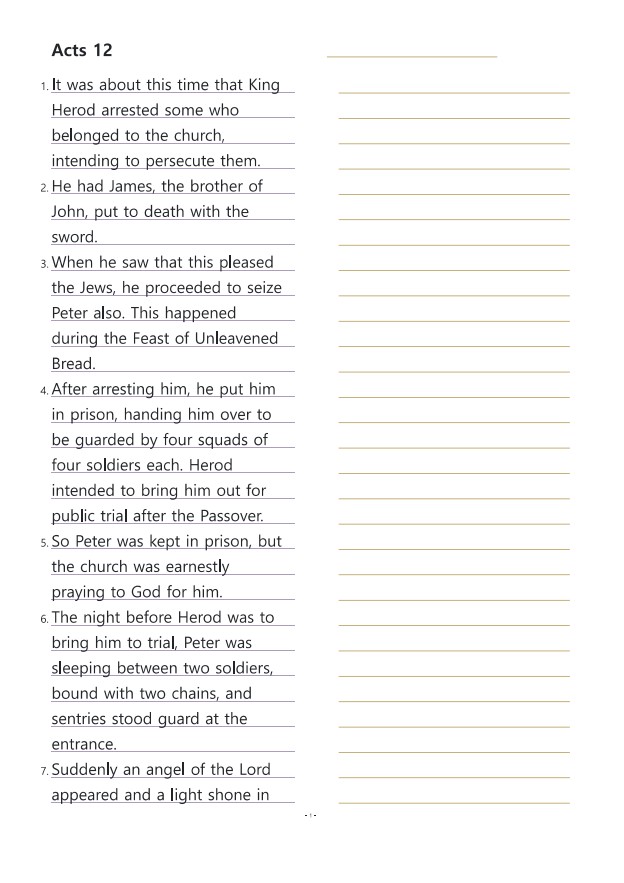 사도행전12장 영어성경따라쓰기