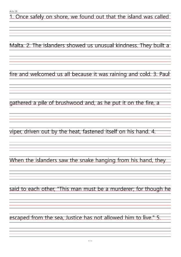 | Acts 27 Handwrite the Bible 사도행전27장 영어성경필사 PDF (0) | 2024.09.07 |