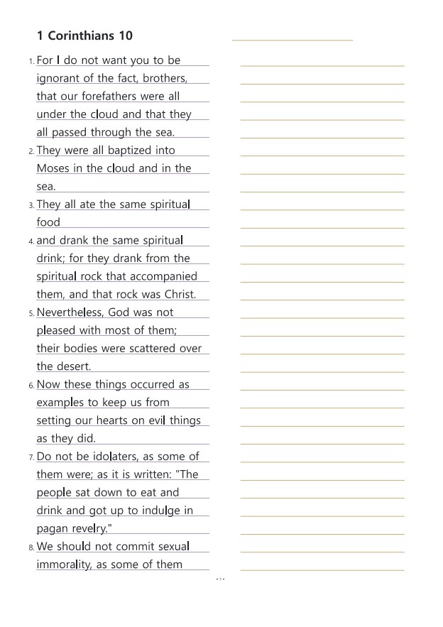 | 1 Corinthians 12 Handwrite the Bible 고린도전서12장 영어성경필사 PDF (0) | 2024.09.09 |