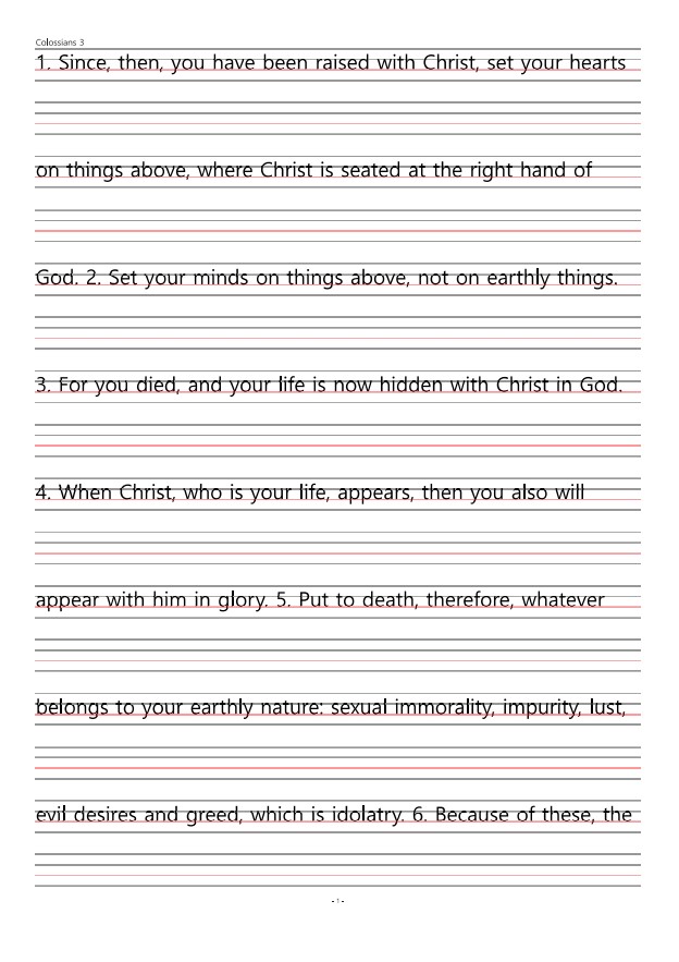 | Colossians 1 Handwrite the Bible 골로새서1장 영어성경필사 PDF (0) | 2024.09.10 |