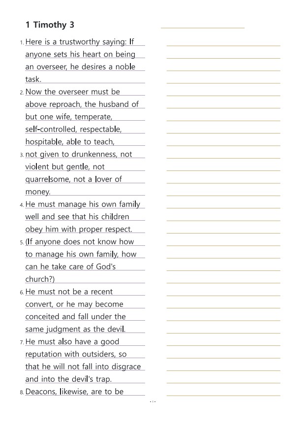 | 1 Timothy 1 Handwrite the Bible 디모데전서1장 영어성경필사 PDF (0) | 2024.09.11 |