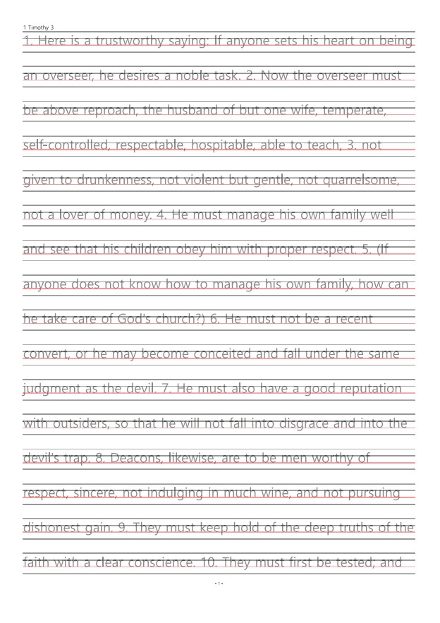 | 1 Timothy 5 Handwrite the Bible 디모데전서5장 영어성경필사 PDF (0) | 2024.09.11 |