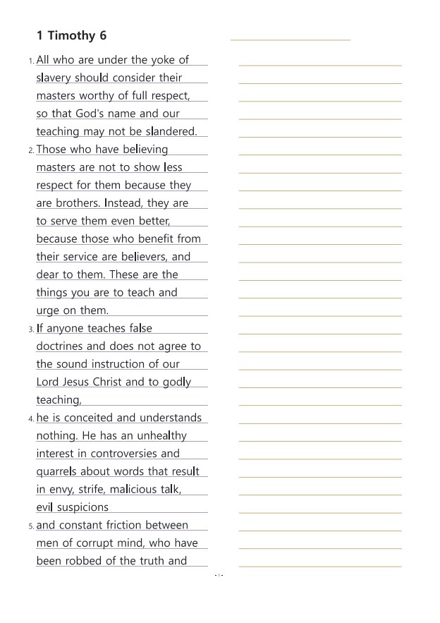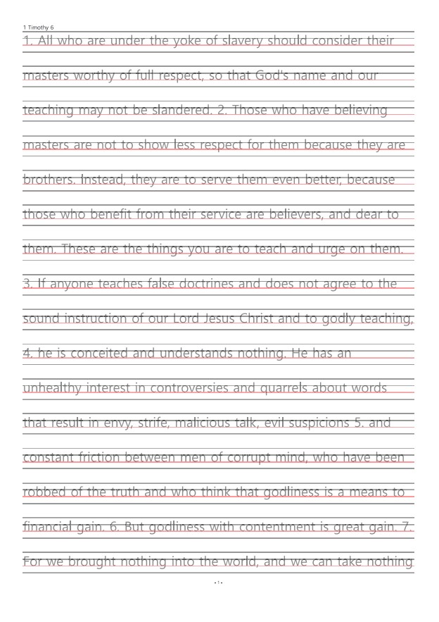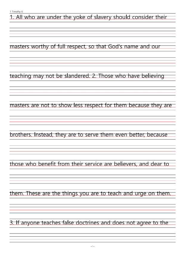 | 1 Timothy 5 Handwrite the Bible 디모데전서5장 영어성경필사 PDF (0) | 2024.09.11 |