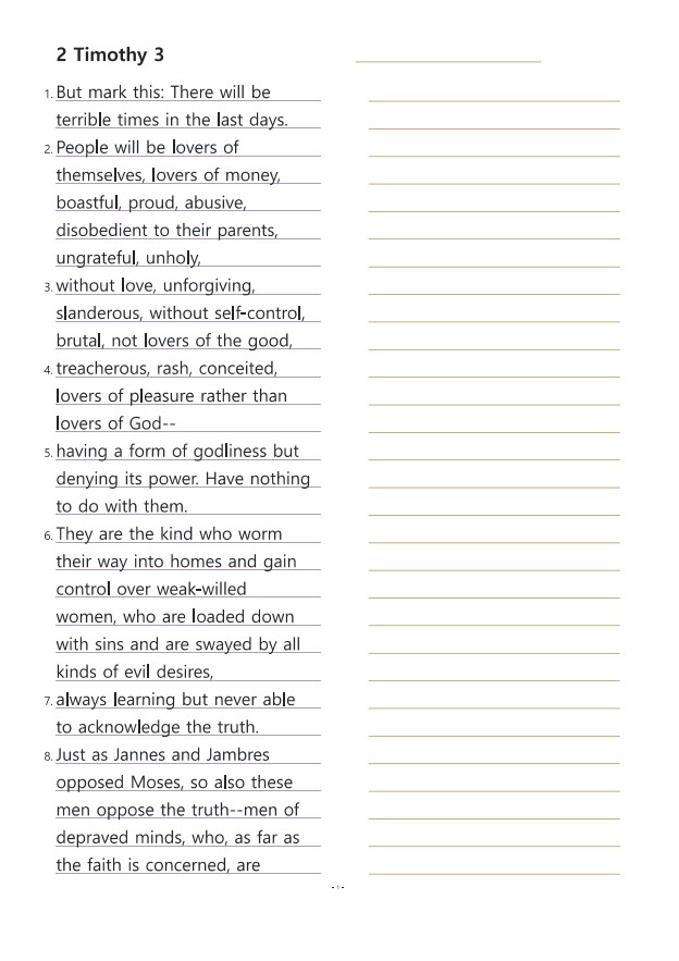 디모데후서3장 영어성경따라쓰기