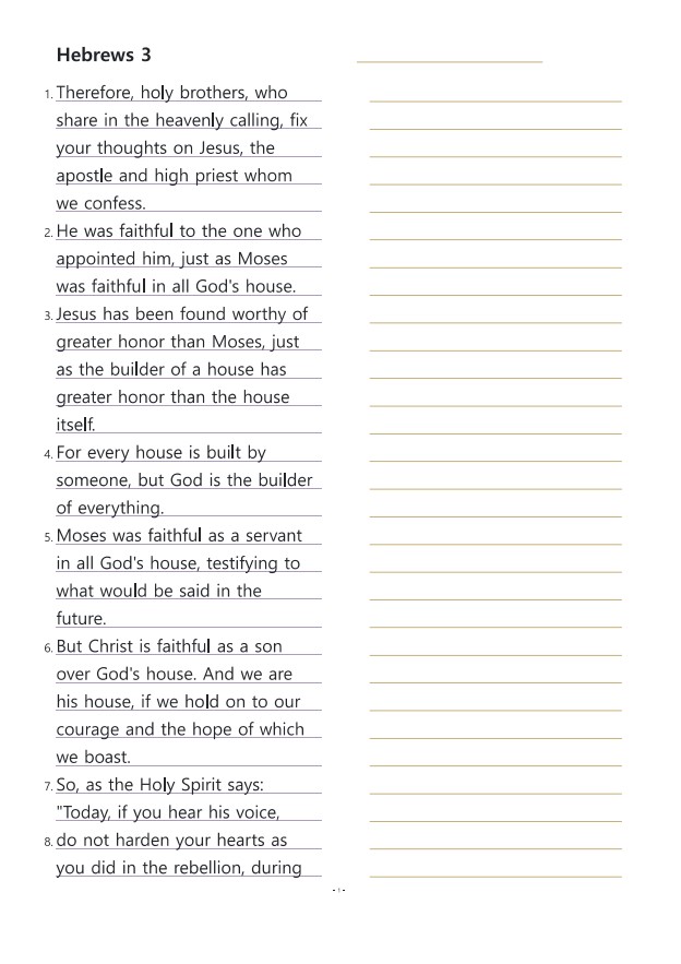 히브리서3장 영어성경따라쓰기