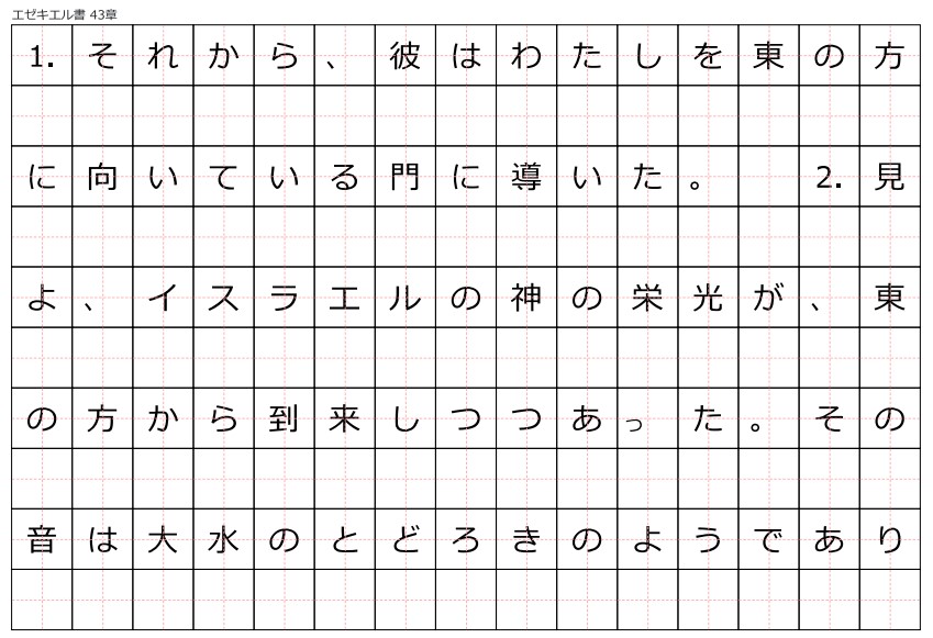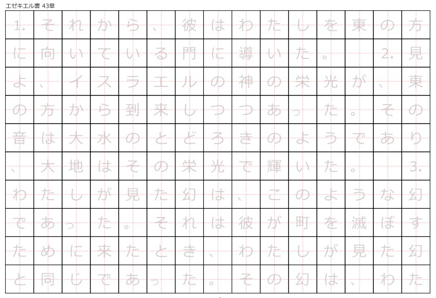 | エゼキエル書 42 書き写し 에스겔42장 일본어성경필사 PDF (0) | 2024.11.10 |