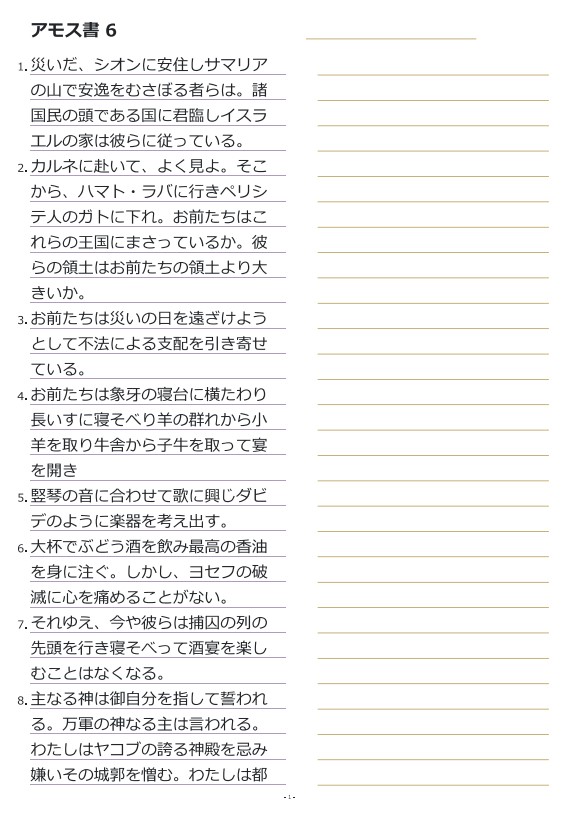 아모스6장 일본어성경따라쓰기