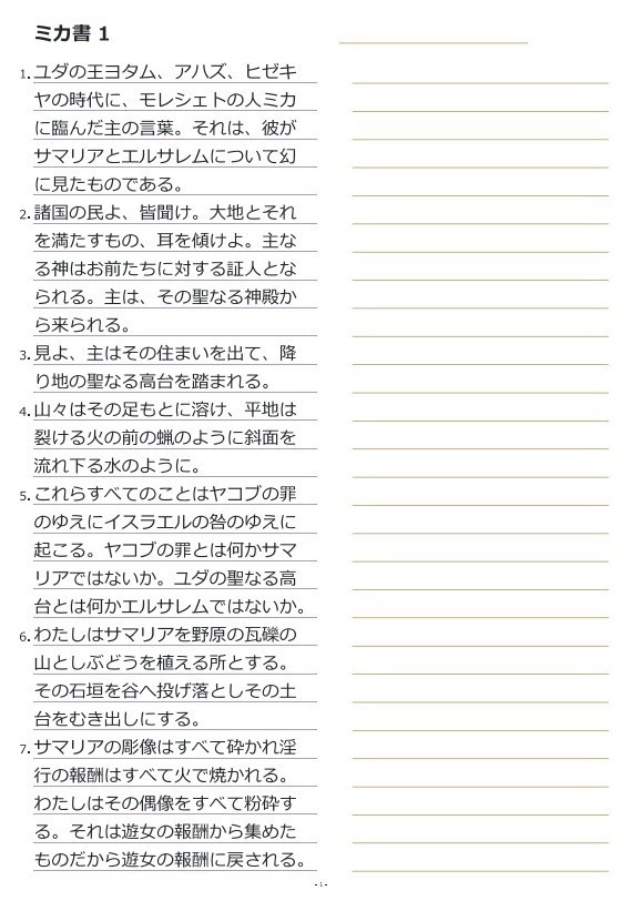 미가1장 일본어성경따라쓰기