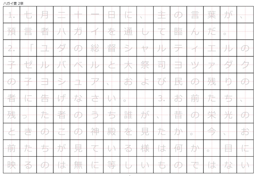 | ハガイ書 1 書き写し 학개1장 일본어성경필사 PDF (0) | 2024.11.13 |