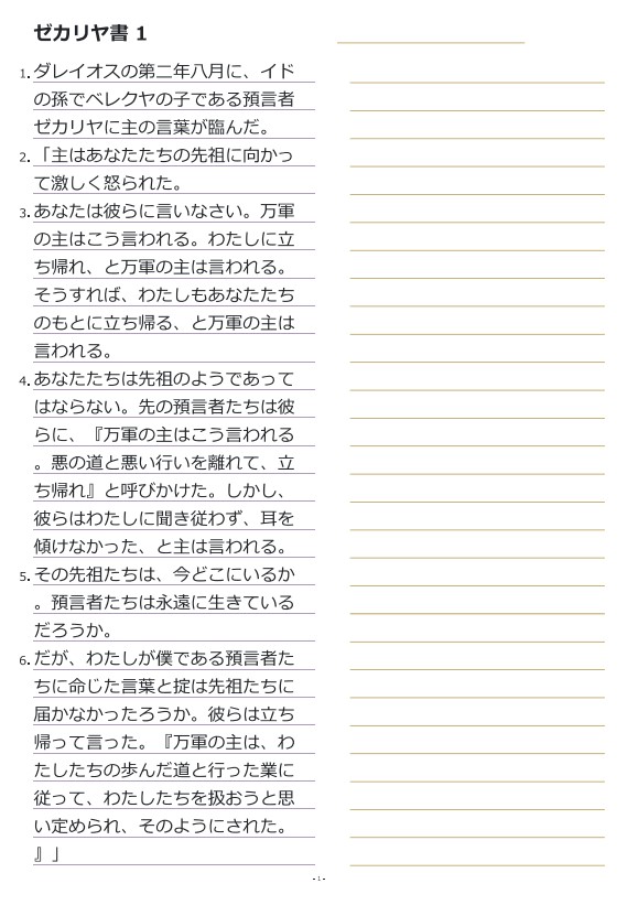 스가랴1장 일본어성경필사